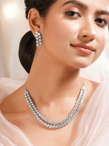 • Elegant Collar Design: Multi-row Cubic Zirconia layout creates a graceful neckline silhouette with statement appeal.