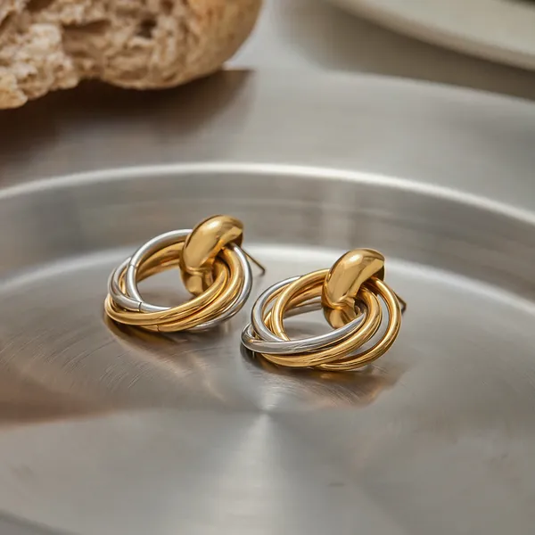The Vynce Orbit Hoops feature a striking intertwined loop design in elegant gold and silver tones, creating a bold and modern statement look. Crafted from high-quality stainless steel with 18K gold PVD dual-tone finish, these earrings are rustproof, waterproof, and hypoallergenic. Perfect for evening wear or statement styling, they add a contemporary and stylish touch to any outfit. ✨